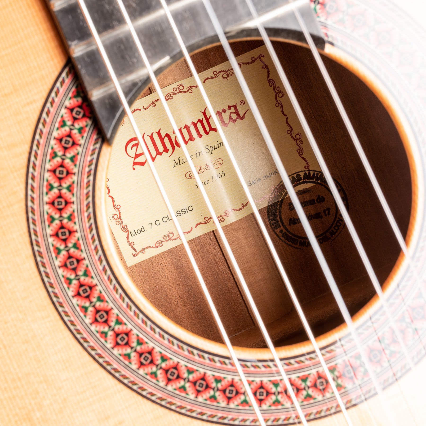 Potpuno ručno izrađena od punog drveta, Alhambra 7C Classic je gitara sa kedrom na prednjoj ploči i mahagonijem na zadnjoj strani i sa bokova. U kombinaciji sa visokokvalitetnom ebanovinom za rukohvat, ova gitara dolazi sa ojačanim vratom trakama od ebanovine za. Kompaktnija i lakša, sprovodi vibracije po čitavom instrumentu i omogućava gitari da u potpunosti vibrira od glave do dna tela. Zvuk je bogat, jasan i izuzetno raznovrstan. Uz gitaru se dobija Alhambrina kvalitetna futrola.