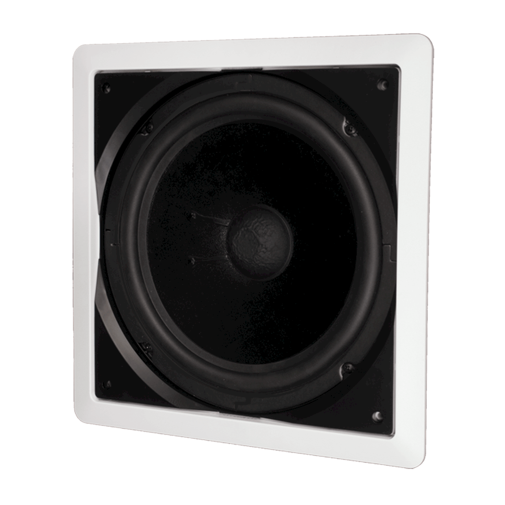 Max. Power 200 W RMS Power 100 W Impedance 8 Ω Sound Pressure (Max. W/1m) 108 dB Connectors Cable clamps Frequency Response (± 3 dB) 50 Hz – 250 Hz Range (-10 dB) 28 Hz – 300 Hz Crossover Frequency 250 Hz Type Passive built-in Dispersion Horizontal 180° Vertical 180° Drivers LF 10” Dimensions 304 x 304 x 104 mm (W x H x D) Cut-out measurement 270 mm (Ø) Built-in depth 70 mm Weight 3.600 kg Construction ABS Front finish White aluminium grill Mounting Claw clamps Colours White (RAL9010) (CS1000S/W) Accessories Included Mounting brace