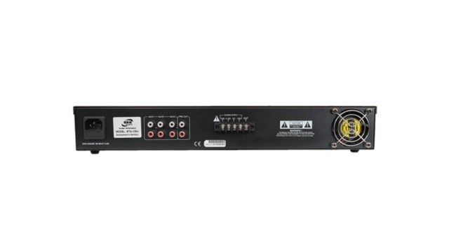 Bes Audio BTA 120U je pojačalo sa MP3 plajerom i FM radiom,jačine 120w, 2 ulaza za mikrofon. U paketu sa daljinskim upravljacem. Na ovakvo pojacalo mozete povezati do 20 zvucnika od 5W na 100V sistem Plafonski zvucnici