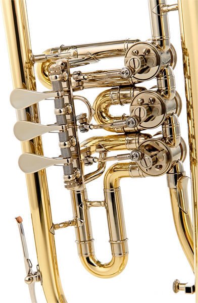 Feature: Minibal valve linkage system, one waterkey. Mounthpipe for trumpet mouthpiece on request. Third slide trigger on request