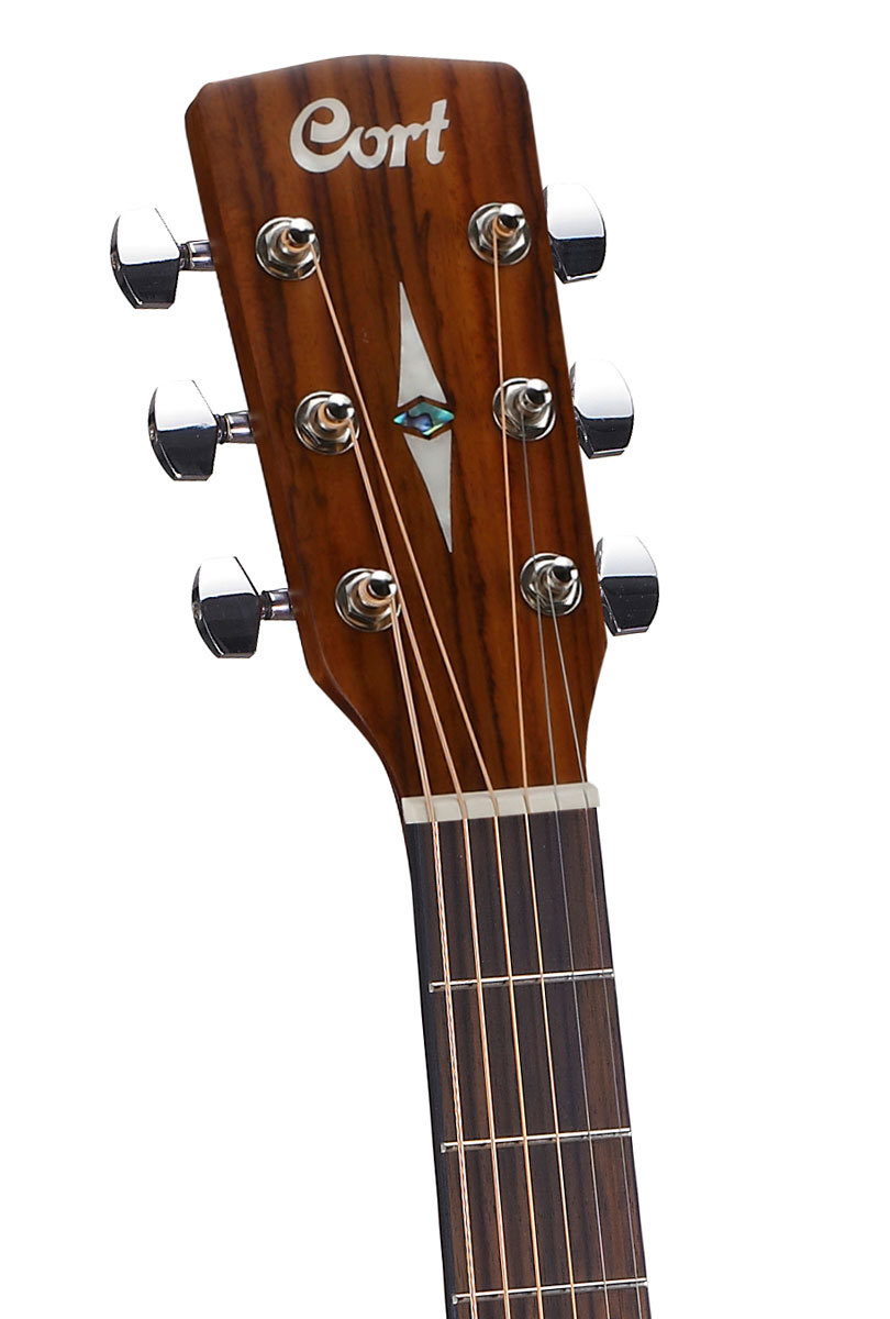Ove gitare impresioniraju beskompromisnim kvalitetom, punim zvukom i odličnim odnosom cene i performansi. Prednja ploča od pune smreke nudi idealnu ravnotežu između snage i fleksibilnosti. Smreka je veoma varijabilnog zvuka i može se koristiti za širok spektar muzičkih žanrova i stilova sviranja. Mahagoni koji se koristi za pozadinu i strane je mnogo mekši i punijeg zvuka od. Jednostavna rozeta daje gitari veoma diskretan i bezvremenski izgled. Smeđa, izuzetno tanka završna obrada sa otvorenim porama poboljšava karakteristike vibracije gitare i daje joj puniji i glasniji zvuk. Most, koji je Cort redizajnirao do poslednjeg detalja, poboljšava prenos vibracija žica na most i prednju ploču. Pored toga, dizajn mosta obezbeđuje dodatnu stabilnost.