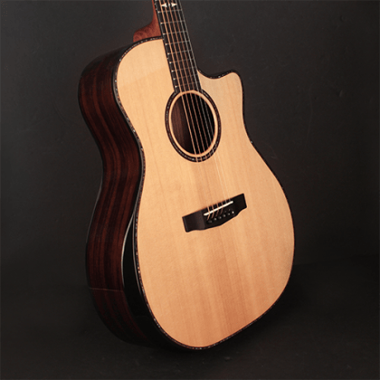 CONSTRUCTION Dovetail Neck Joint CUTAWAY Venetian BODY Grand Auditorium NUT WIDTH 43㎜(1 11/16″) TOP Solid Sitka Spruce BACK & SIDES Pau Ferro(Arched back) NECK Mahogany(Palaquium) BINDING Black FRETBOARD Ovangkol FRETS 20 SCALE 643㎜(25.3″) TUNERS Die-Cast Gold w/ Black Knobs ROSETTE Abalone BRIDGE Ovangkol w/ Ebony Pins ELECTRONICS L.R.Baggs® EAS-VTC STRINGS D’Addario® EXP16 SPECIAL Beveled Armrest Zemlja porekla: Indonezija