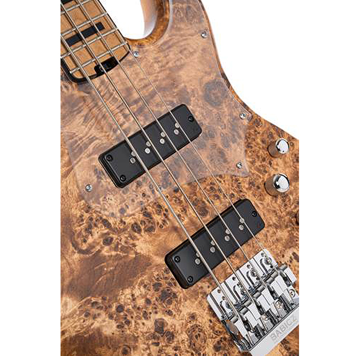 Cort GB Modern je lagan i udoban J-stil bas sa vrhunskim specifikacijama. Kombinuje telo od javora, paulownia krila i burl topolu, uz roasted javorov vrat i hvataljku za stabilnost i moćan ton. Opremljen je Nordstrand Big Single magnetima i MarkBass preampom za svestran zvuk, dok Hipshot Ultralite mašinice i Babicz FCH most nude precizno štimovanje i odličan sustain. Uz Luminlay markere i ekskluzivnu futrolu, ovo je moderni bas za profesionalne muzičare.