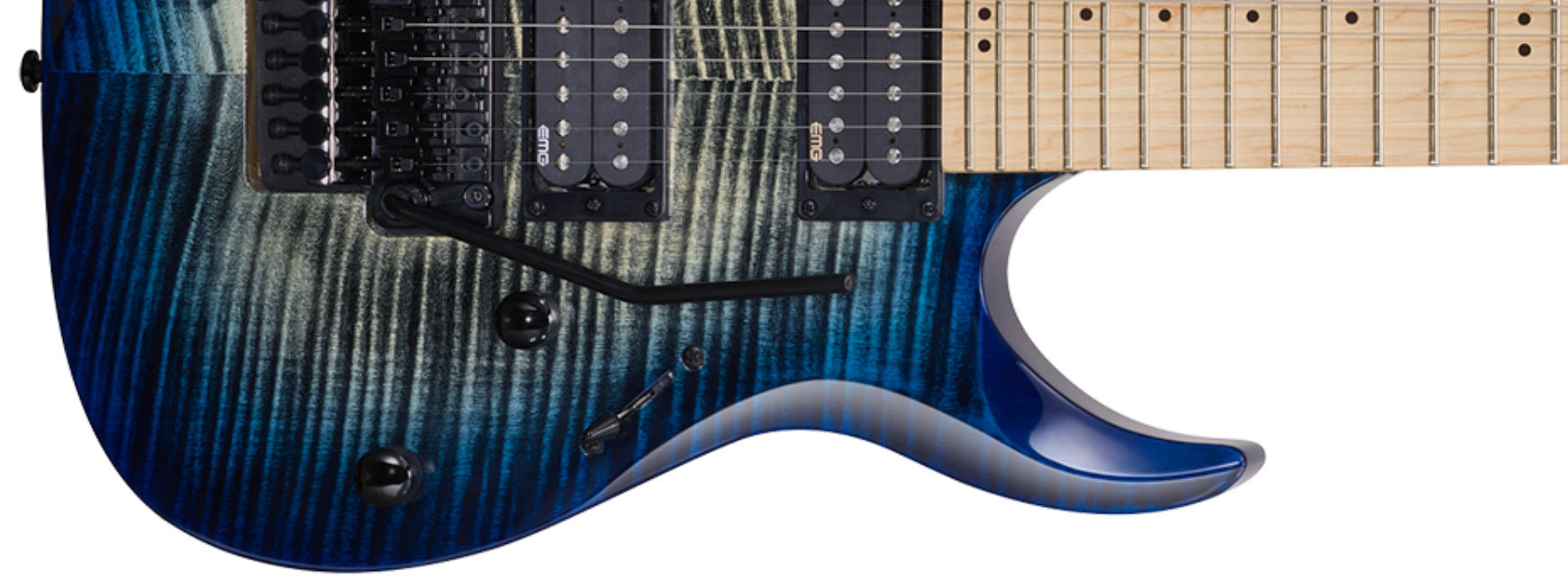 CONSTRUCTION Bolt-On neck BODY American Basswood w/ Flamed Maple Top NECK Hardmaple FRETBOARD Maple(Compound Radius) FRETS 24 SCALE 648mm(25.5″) TUNERS Die-Casting BRIDGE FloydRose® Special Tremolo PICKUPS EMG® RetroActive Hot70 Set ELECTRONICS 1 Volume, 1 Tone, 3 Way Toggle Switch HARDWARE Black STRINGS D’Addario® YB EXL 120 Zemlja porekla: Indonezija