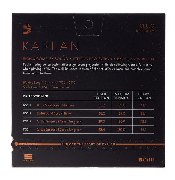 Kaplan žice za violončelo proizvode bogat i složen ton. Proizvedene za najizbirljivije muzičare, ove žice dobro podnose ekstremnu težinu gudala i omogućavaju raznoliku tonsku paletu. Kaplan žice za violončelo pružaju moćan, ali topao zvuk prilikom sviranja.