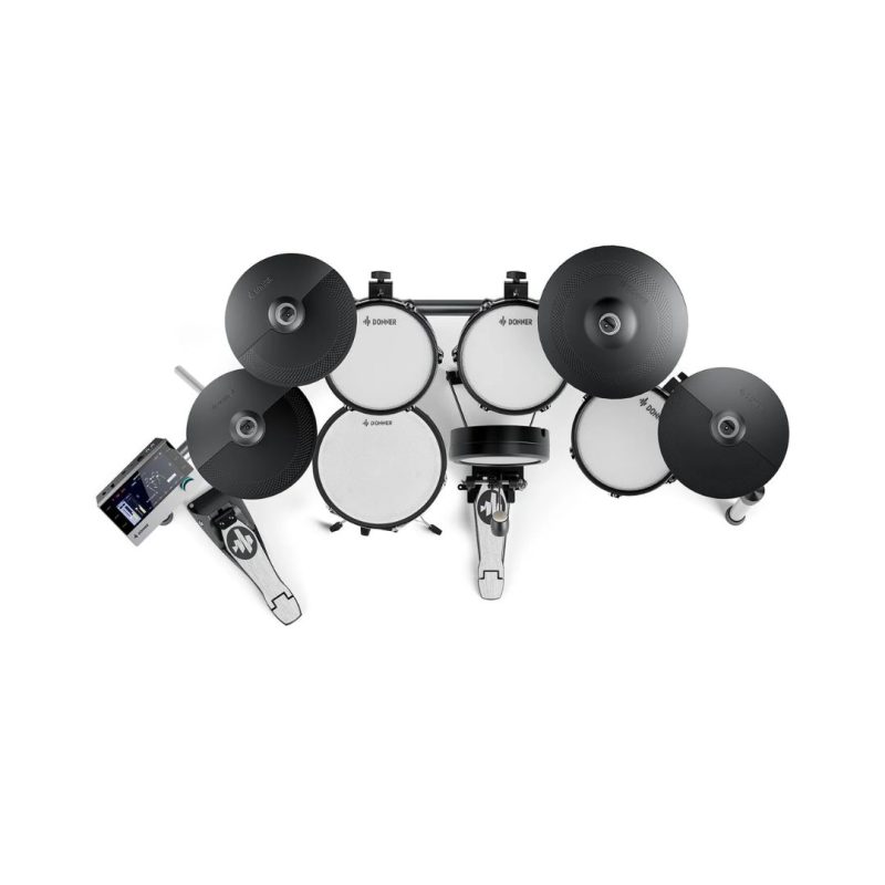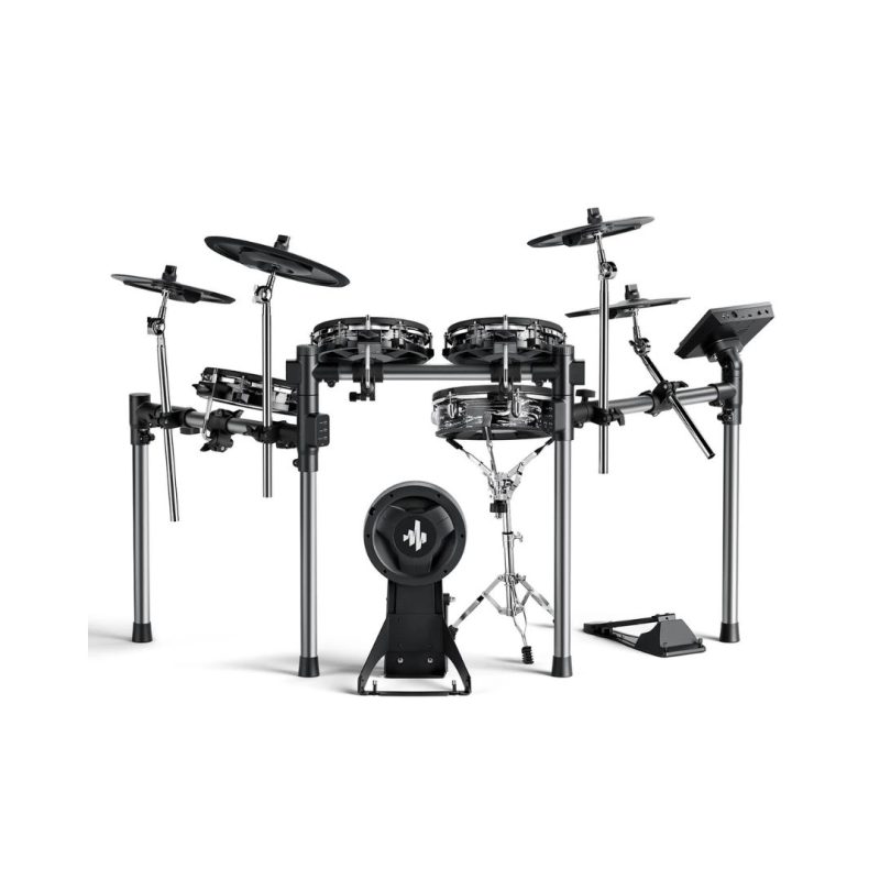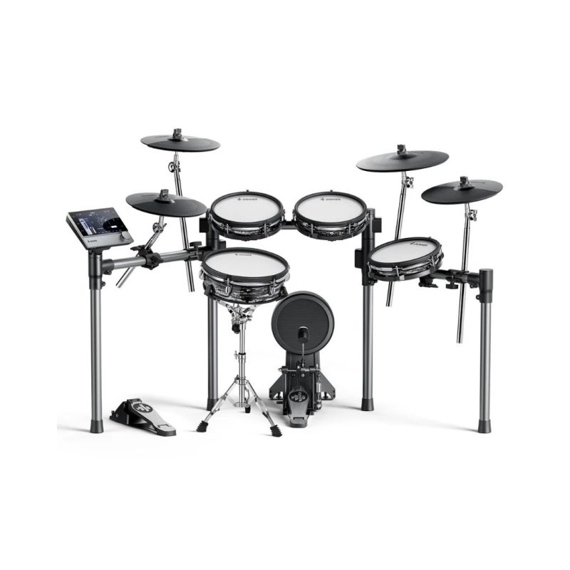 Padovi od 12” (snare) i 10” (toms) sa dvostrukim zonama i mrežastim glavama nude prirodan odziv i realan osećaj sviranja, dok činele od 12” i 14” sa funkcijom gašenja (choke) i triple-zone ride činelom pružaju potpunu kontrolu i dinamiku. Kompaktan metalni ram omogućava stabilnost i uredno postavljanje u svakom prostoru.