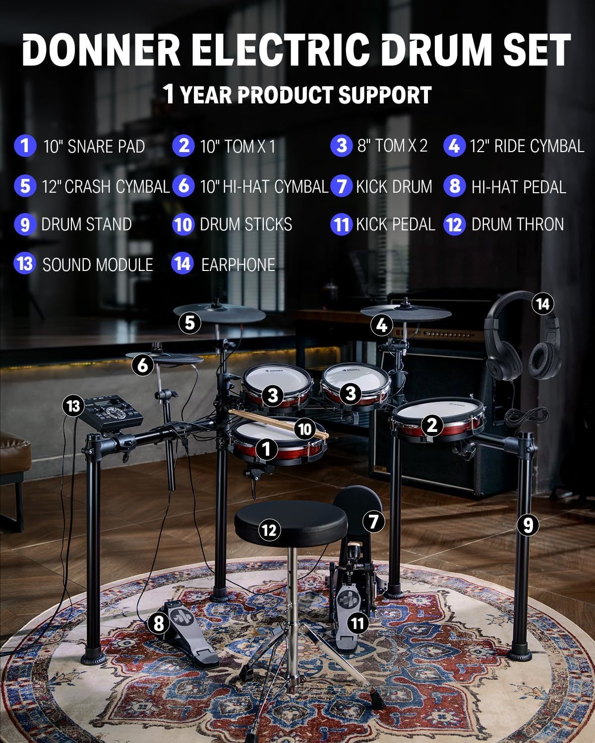 Bass drum: 6.5″ Mesh pad (pogodan za jednostruki i dvostruki pedalu)