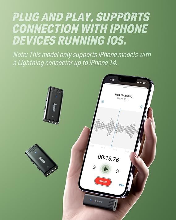 Dizajniran za jednostavnu upotrebu, Donner VPM-10 lavalier mikrofonski set ima plug and play dizajn kompatibilan sa svim iOS uređajima. (Samo Lightning. Kompatibilan sa modelima koji su bili pre iPhone 15.) Omogućava praćenje kvaliteta snimljenog zvuka u realnom vremenu, obezbeđujući efikasne i visokokvalitetne snimke bez opsežnog podešavanja.