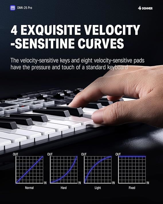 Ultratanak dizajn i prenosivost-USB MIDI kontroler sa 25 mini MIDI tastera osetljivih na brzinu na tastaturi za beat maker, studijsku produkciju, kontrolu virtuelnog sintisajzera. Možete zamisliti da putujete bilo gde sa midi tastaturom sa 25 tastera i da možete da pravite muziku.