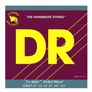 DR strings NMH5 45 Nickel Lo-Riders NMH-5-45, set of string for 5-string bass guitar, gauges 045″ 065″ 085″ 105″ 125″, nickel plated steel, 34″ longscale, roundwound, hexagonal core, handmade in USA.