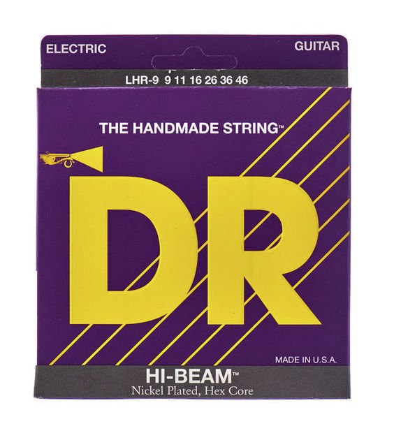 DR Strings LHR-9 Hi-Beam, String Set for electric guitar, Nickelplated, Hex Core, Gauges 009-011-016-026-036-046