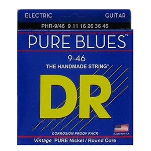 DR Strings Pure Blues Lite & Heavy 9-46, electric guitar strings, pure nickel wound, round core, 009″, 011″, 016″, 026″, 036″, 046″,