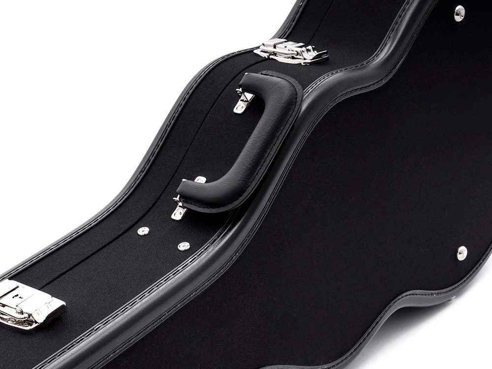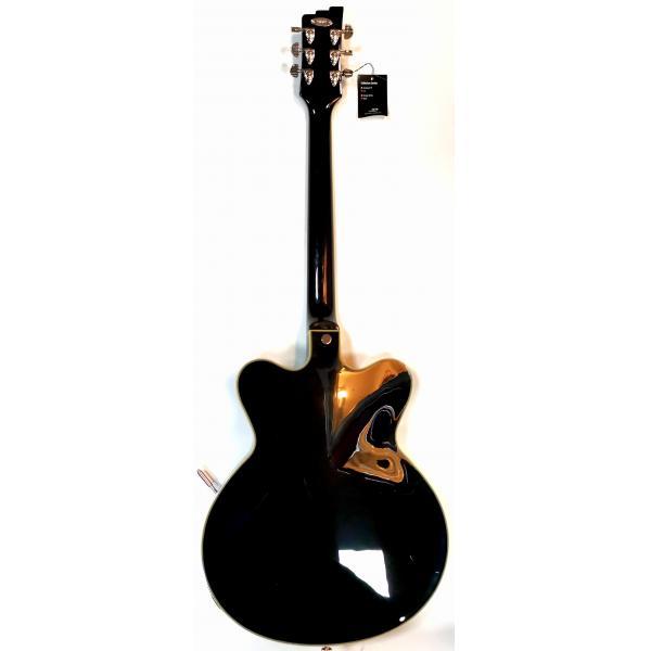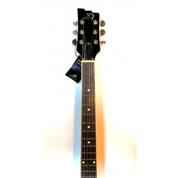 Neck Joint: Set-inWood: 1-piece mapleWidth: 42.5 mm / 1.67″ (nut), 52 mm / 2.05″ (12th fret)Thickness: 21 mm / 0.8″ (1st fret), 24 mm / 0.95″ (12th fret)Shape: DFingerboard: Indian rosewood, radius 305 mm / 12″Inlays: Cream dotsFrets: 22 jumbo 2,8 x 1,0 mmScale Length: 648 mm / 25.5″Trussrod: Steel dual-actionHeadstock: Matching body colourBodyType: Semi-hollow with sustain block, bent sides, f-holeTop: Laminated spruceBack, Sides: Laminated mapleSize: 51,5 x 41 cm / 20.27″ x 16″Height (sides): 4.5 cm / 1.8″Binding: Cream, 5-layer purflingPickguard: Black & goldFinish: PUR lacquerHardwareTuners: Duesenberg Z-Tuners, “Art Diego” buttonsBridge: Duesenberg steel saddle bridgeTremolo: Duesenberg Deluxe TremolaStrap pins: Kluson Multi-LockHardware Colour: NickelStrings: Duesenberg DSA10 (010-013-017-028-042-050)ElectronicsPickup (neck): Duesenberg Domino P90Pickup (middle): N/APickup (bridge): Duesenberg GrandVintage HumbuckerWiring: 1 volume, 1 tone, 3-way pickup selectorAccessoriesCase: Custom Line case (included)Tools: All required allen keys (included)zemlja porekla: SAD
