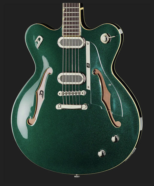 The Gran Majesto is a big body, semi hollow, dual pickup, 22 fret electric guitar, featuring arched top and back, bent sides and a 648mm scale. Its 45mm sides and semi-hollow construction, featuring a solid centerblock, provide the celebrated Duesenberg flexibility from clean to rock tones and even further. Additionally, the Gran Majesto features twin F-Holes, a floating transparent pickguard and our new 4-Way rotary pickup switch which adds a new variation to the way we combine pickups.