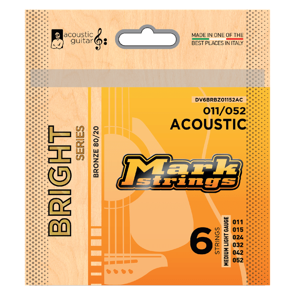 Sa odnosom bakra i cinka u omotaču od 80/20, serija BRIGHT je dizajnirana da suptilno poboljša svetle i detaljne tonove sa srednjim delom, dodajući projekciju i udar vašoj akustičnoj gitari. Kao i kod drugih Markstrings akustičnih serija, BRIGHT serija se pravi u izboru od 6 žica, od ekstra laganih do teških, kao i set od 12 žica.