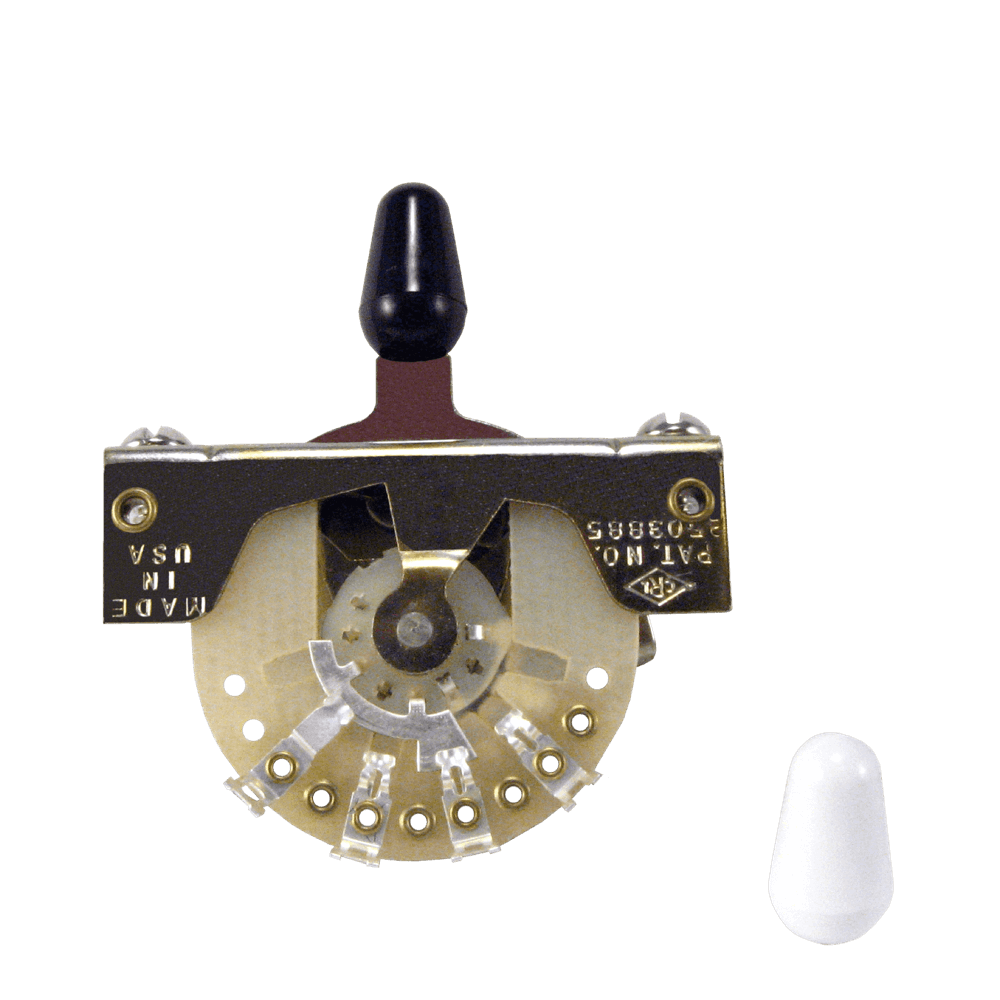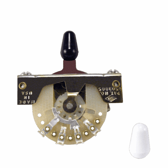 Ovaj 3-smerni prekidač Ernie Ball 6371 u stilu Stratocaster-a je isti kao oni koji su instalirani u originalnim Stratocasterima i idealan je za popravku ili restauraciju autentičnih instrumenata. Uključuje bele i crne poklopce prekidača.