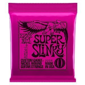 Ernie Ball Super Slinky Electric Strings are played by Jimmy Page, Jeff Beck, and Angus Young. These strings are precision manufactured to the highest standards and most exacting specifications to ensure consistency, optimum performance, and long life. Super Slinky wound strings are made from nickel plated steel wire wrapped around a hex shaped steel core wire. The plain strings are made of specially tempered tin plated high carbon steel; producing a well balanced tone for your guitar. Gauges .009 .011 .016 .024w .032 .042