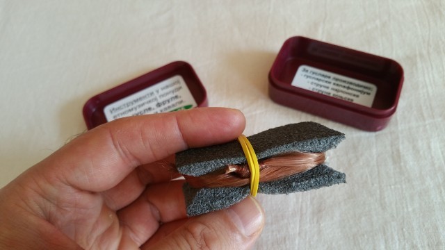 Najlon je pripremljen, jedan čvor je fiksiran super lepkom, struna je raščešljana, pričvršćena je na 3 tačke kako se ne bi upetljala.