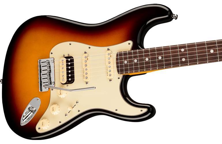 Fender American Ultra Stratocaster HSS Ultraburst je trenutni vrhunski model! Fender je Ultra dao sve moderne, savremene karakteristike: Fender Deluxe 2 Point Tremolo sa priključnom polugom, preciznim čivijama sa zaključavanjem, novu generaciju bešumnih pickupova – Ultra Noiseless Vintage Strat pickup i Ultra Tap humbucker na bridžu, udoban vrat Modern D. Profil i složeni radijus fingerboarda.