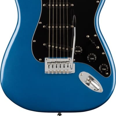 Električne gitare Squier Affinity serije predstavljaju Fenderove najpopularnije dizajne električnih gitara po samo delić cene originalnih. Affinity Stratocaster nudi sve što očekujete od električne gitare ovog tipa. Lagano telo od topole ukrašeno je izborom završnih boja i sjajnim poliuretanskim lakom. Vrat i grifna su od javora. Površina rukohvata je podeljena sa dvadeset i jednim srednjim džambo pragom i crnim pozicionim tačkama. Prijatan uži “C” profil vrata obezbeđuje udobno kretanje ruke po vratu i pruža dobar osećaj prstima. Tri singl magneta daju gitari odgovarajući Strat ton i osećaj. Karakter zvuka se može oblikovati potenciometrom za jačinu zvuka, dve kontrole tona i petopozicijskim prekidačem za promenu zvuka. Žice su usidrene u hromiranim čivijama i tradicionalnom sinhronizovanom tremolu sa pričvršćivanjem u dve tačke.