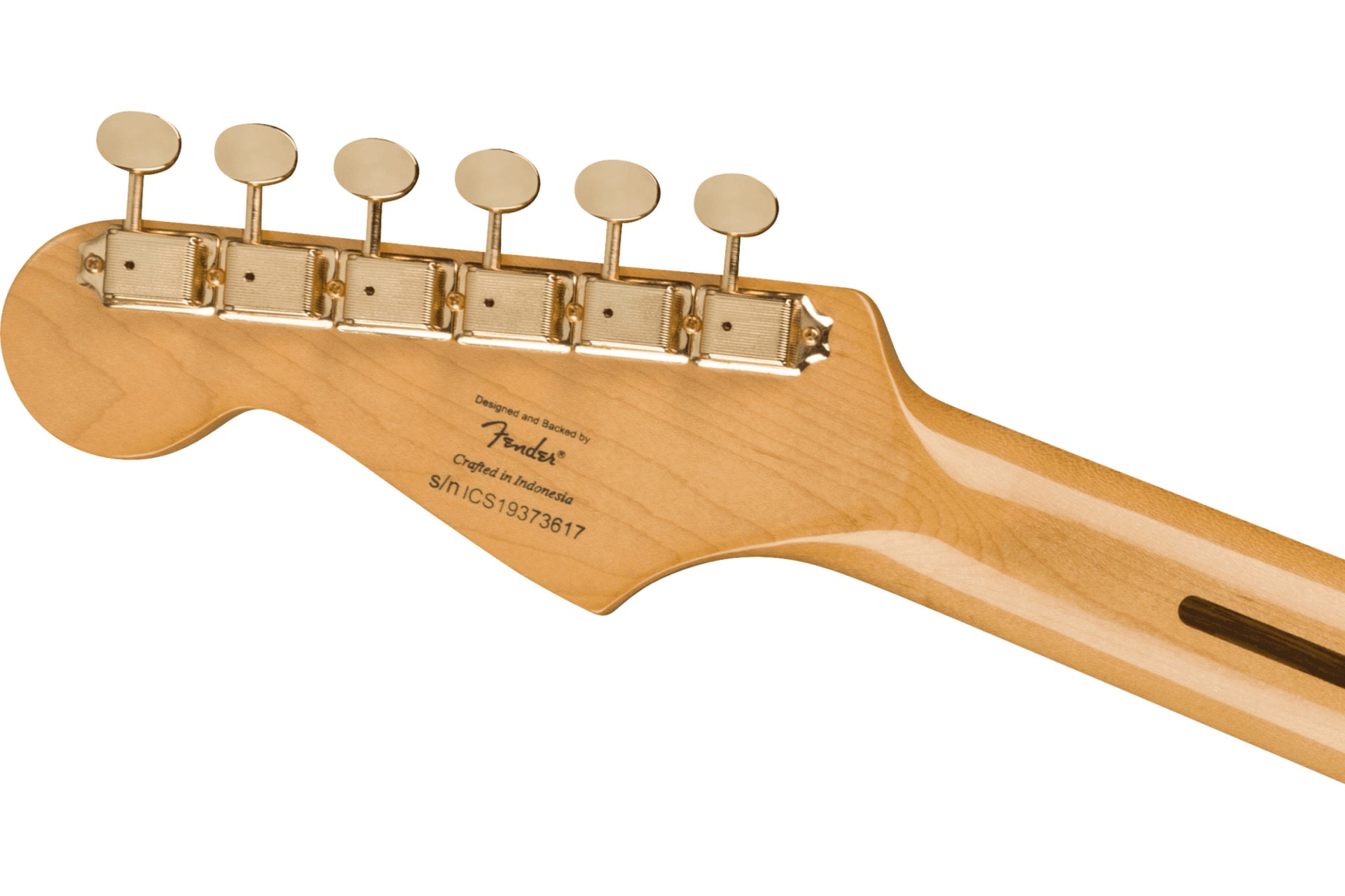 Classic Vibe iz 50-ih Stratocaster stvara neverovatan ton zahvaljujući trima Alnico singl magnetima koje je dizajnirao Fender. Karakteristike prilagođene gitaristima uključuju tanak, udoban profil vrata u obliku slova „C“ sa prstom od 9,5” radijusa koji se lako svira i uskim i visokim pragovima, kao i tremolo sistem u vintage stilu. Ovaj retrospektivni Skuier model takođe ima oznake na glavi inspirisane 1950-im, niklovani hardver bogatog izgleda i glatki vintage nijansirani sjaj za vrat za atmosferu stare škole.