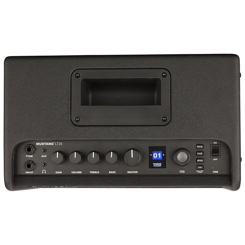 Mustang LT25 uključuje ono što su u Fenderu naučili tokom decenija proizvodnje gitarskih pojačala najboljeg zvuka. Idealan je za početnike i iskusne muzičare, sa super jednostavnim korisničkim interfejsom i kolekcijom od 30 unapred podešenih postavki koje pokrivaju širok spektar muzike „najvećih hitova“ tonova električne gitare. Svestrani signalni lanac sa visokokvalitetnim ugrađenim pojačalima, USB interfejsom i modelima efekata proizvodi neverovatne tonove, što ga čini idealnim pojačalom za vežbanje.