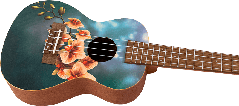 Flight AUC-33 Orchid Concert Ukulele je elegantan i prestižan ukulele. Ovaj model je napravljen od laminiranog mahagonija sa fenomenalno dizajniranom prednjom pločom. AUC-33 zvuči upravo onako kako i izgleda, vrat je napravljen od afričkog drveta okoume, dok je grif od oraha. Ova odlična kombinacija garantuje stabilnu intonaciju celog vrata. Nut i sedlo su izrađeni od kosti, što za rezultat ima generalno kvalitetniji ton. Ovaj ukulele ima dugme za kaiš kao i kvalitetnu futrolu.