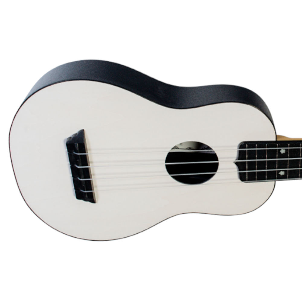 Flight TUS 35 WH Travel ukulele Soprano, sa vratom i leđima od plastike, prednjom pločom od punog drveta, pružiće vam vrhunsko zadovoljstvo sviranja, a ujedno svojim plastičnim telom štitiće instrument od svih spoljnih uticaja i vremenskih uslova. Uz ukulele fabrički se dobija i odgovarajuća torba.