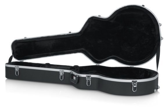 The GC-335 deluxe molded case is designed to fit Gibson 335® and Similar Style Semi-Hollow Guitars. Lined with plush fabric and outfitted with an EPS foam core, the case contours to the shape of the guitar and provides support to all the most delicate areas. The outer shell is molded from ultra-resilient ABS plastic, a semi-flexible material able to absorb impacts and endure the abuse of travel. Heavy-duty aluminum edging ensures a tight fit while lockable latches let you secure the case quickly and easily. For semi-hollow acoustic guitars and the Gibson 335®, the GC-335 is the only case you’ll ever need.