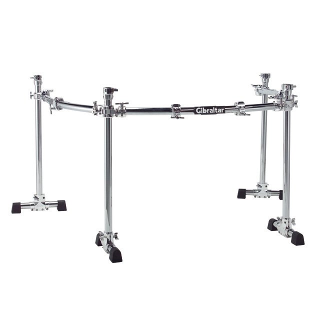Four-post Road Series Rack with all curved horizontal bars wrap around the player giving ultimate placement for drums, cymbals, and mounting accessories. A great rack for single or double bass configurations.