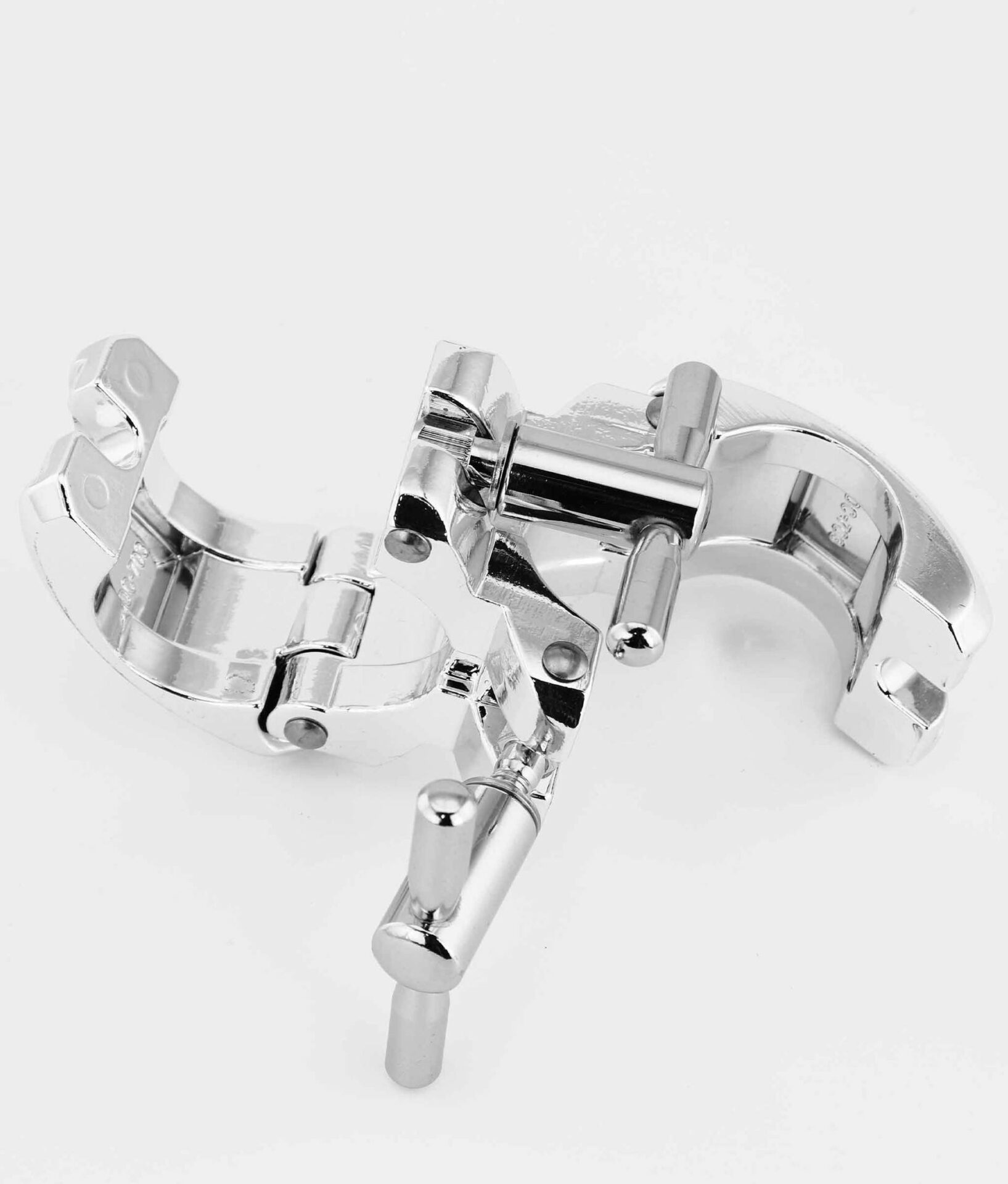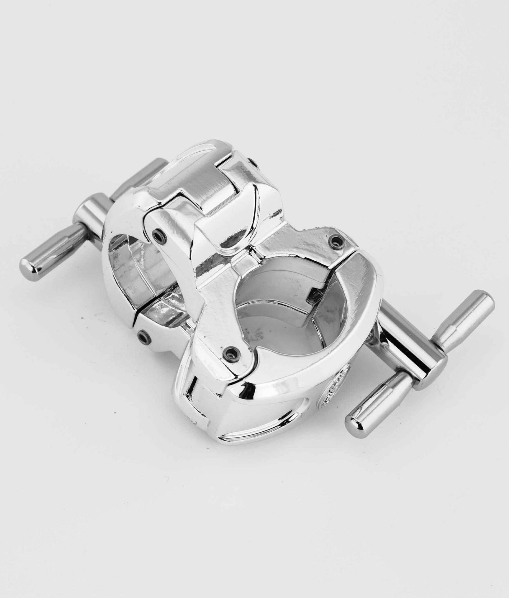 The Chrome Right Angle Drum Rack Clamp is designed to create joints between vertical drum rack supports and any straight or curved horizontal drum rack bar.