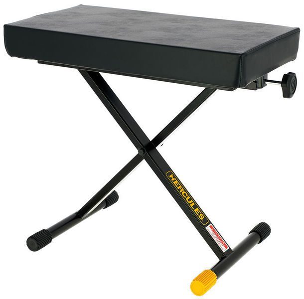The HERCULES Keyboard Bench KB200B sets up easily, is comfortable and sturdy, and folds flat so it is easy to transport.