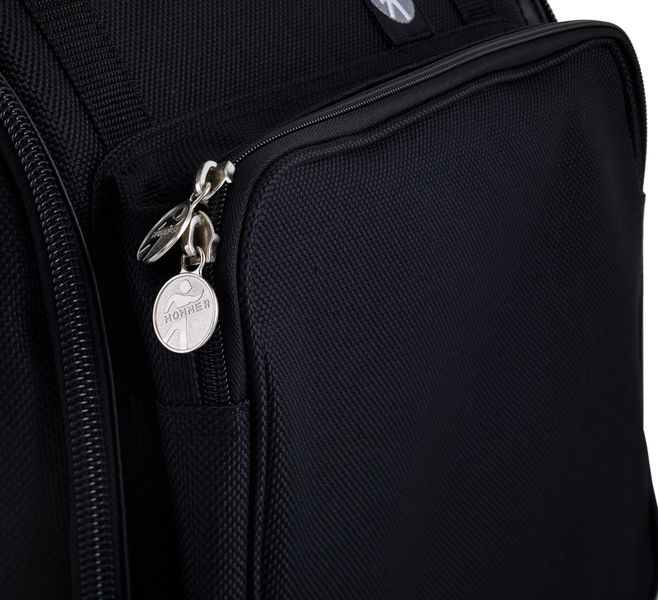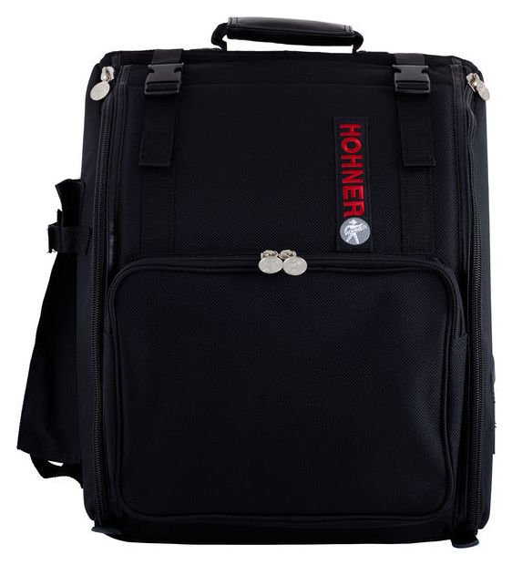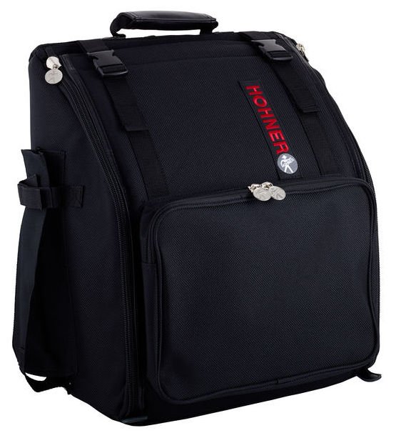 Hohner gig bag for accordion, 48 bass- instrument, the outer skin of your gig bag is made of tear proof Cordura® and features multiple seams. It’s cushioned and stiffened so that your instrument can withstand substantial shocks. These bags also sport several additional features. From the 48-bass size on, the gigbags have a large pocket for sheet music, another for notepaper as well as pen pockets and a holder for a music stand. Adjustable, cushioned shoulder straps on the gig bag provide for an ergonomical fit.