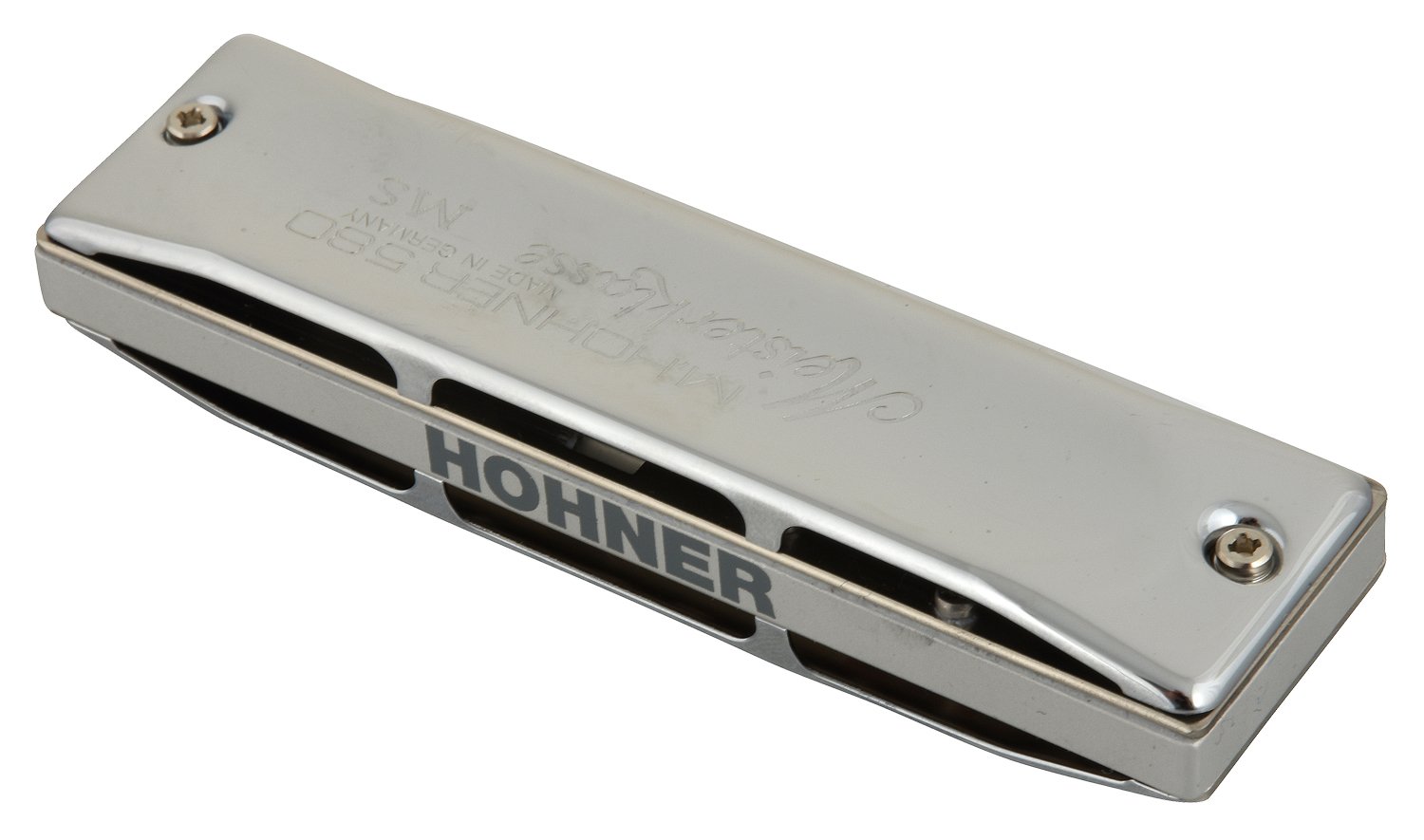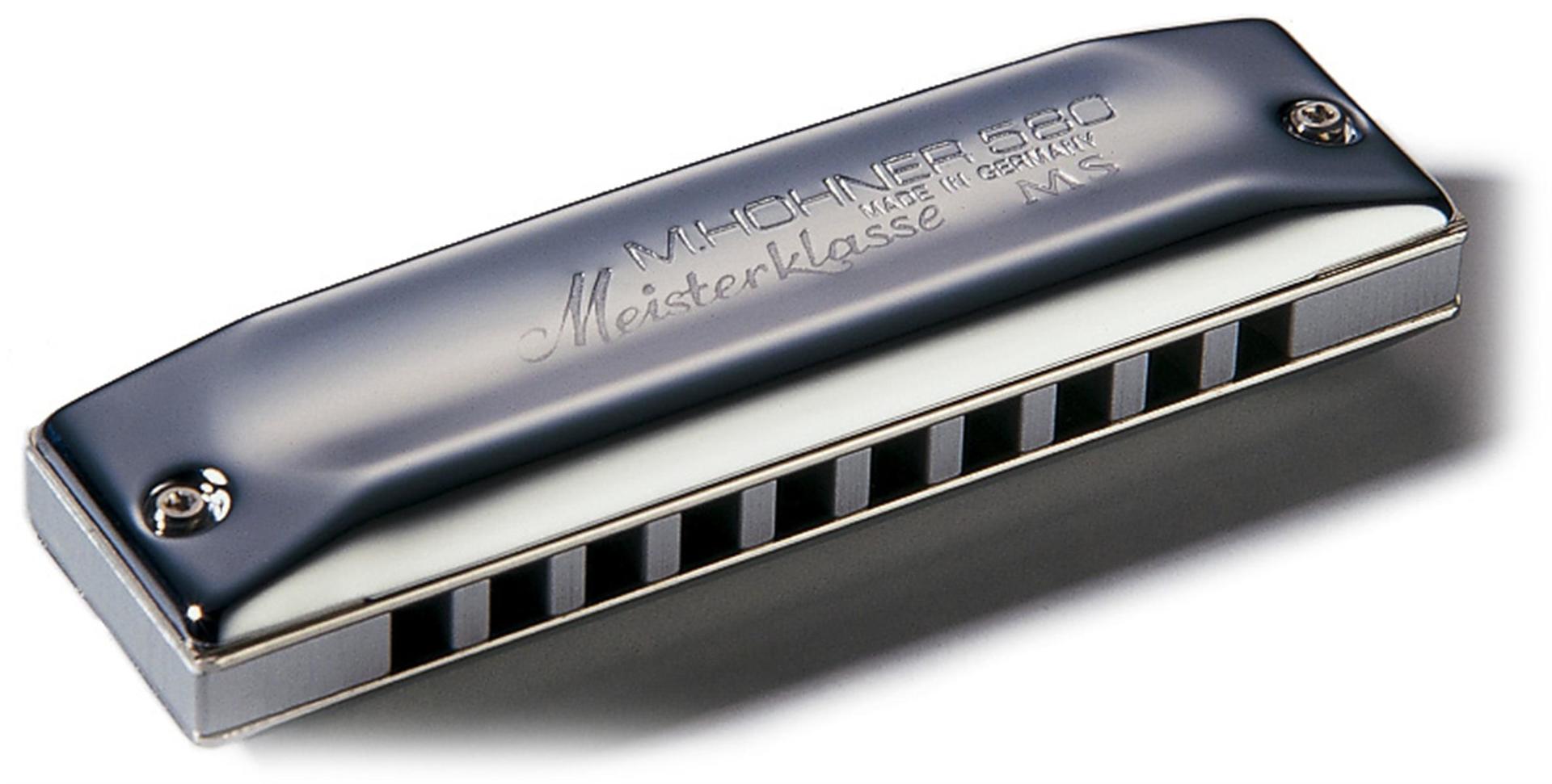 The Hohner 580 Meisterklasse is the most exclusive harmonica in the MS Series. With a lightweight, aluminum comb; 1.05mm, nickel-plated reed plates; and ergonomic, timelessly elegant chrome-plated covers, the 580 Meisterklasse is an exceptionally bright, clear sounding, and sleek harmonica.