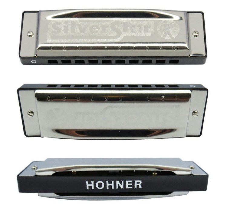 The popular Hohner Silver Star entry level 10 hole diatonic harmonica from Hohner.The Silver Star in the key of ‘G’ is the most popular key for beginners, is a step above many other entry level harmonicas. the brass tuned reeds are built around an airtight ABS comb.