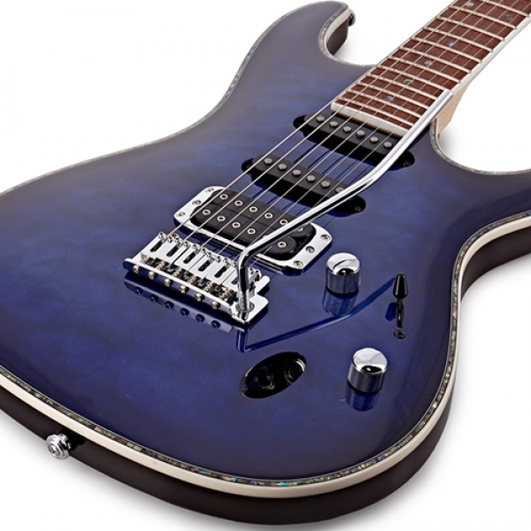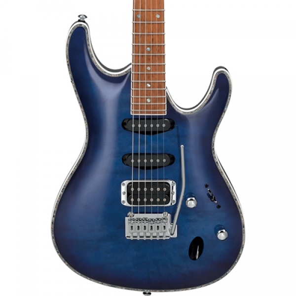 SA serija japanskog brenda Ibanez predstavlja električne gitare sa raznovrsnim zvučnim karakteristikama. Možete ih lako identifikovati među ostalim Ibanez gitarama po njihovom lučnom vrhu, sinhronizovanom tremolu i HSS konfiguraciji magneta. Telo SA360NQM-SPB je napravljeno od okoume i spektakularnog furnira od rebrastog javora. Za javorov vrat je zalepljen vrat od jatobe, drveta poznatog i kao brazilska trešnja, sa 22 srednje veličine. Orijentaciju na površini vrata olakšavaju biserne (Abalone) tačke. Tri pasivna magneta humbucker i dva single-coil-a, daju vam prelepo čist zvuk, kako bluz, tako i metalik distorziju po želji. Njihov zvuk se može oblikovati potenciometrima za jačinu zvuka, tonskim potenciometrom i petopozicijskim prekidačem za promenu zvuka. Žice su smeštene originalne čivije i T102 sinhronizovani tremolo, koji pomažu u  impresivnim zvučnim efektima. Moderan izgled instrumenta je naglašen impresivnom završnom obradom u boji, bisernim povezom i hromiranim hardverom.