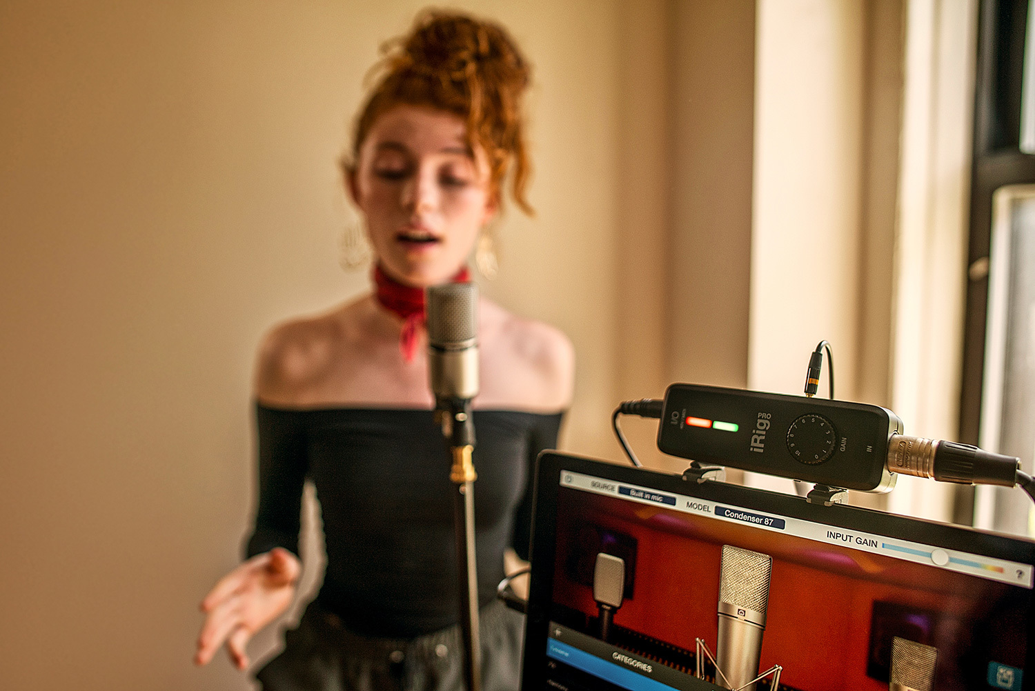 iRig Pro I/O is designed for all your gear — studio mics, vocal mics, guitars, basses, keyboards, sound modules, MIDI Controllers — you name it. At its core, iRig Pro I/O features 24-bit A/D and D/A converters, and a 96kHz sample rate for professional quality audio on the go. When using a studio microphone, iRig Pro I/O can supply 48V of phantom power to the XLR jack for your active condensers. Plus, you can dial in the perfect and precise amount of gain with the new marked gain control knob. Recalling your gain settings for your mics and instruments has never been easier.