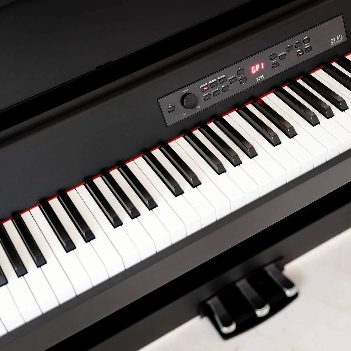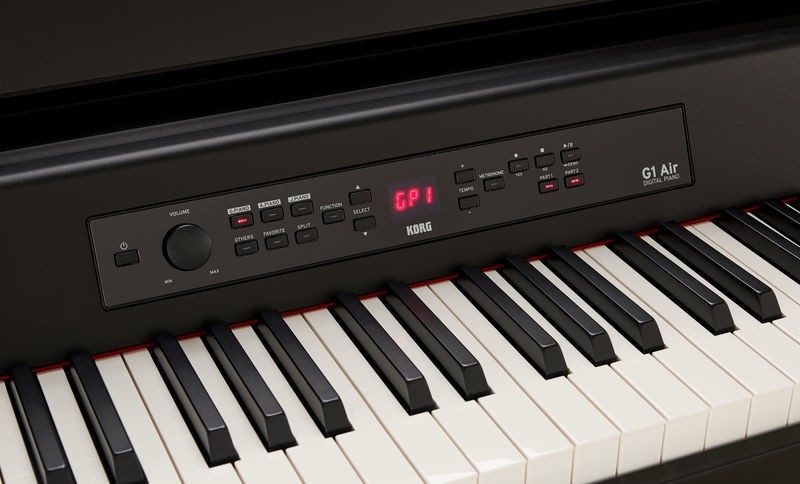 Korg G-1 Air donosi zvuk tri najpopularnija modela koncertnih klavira – nemački, austrijski i japanski, te zadovoljava gotovo sve potrebe različitih izvodjača. Zahvaljujući najsavremenijim metodama multi-semplinga moguće je postići krajnje realan dinamički osećaj sviranja kako finog pianisima, tako i moćnog fortisima, shodno zahtevima i potrebama. Dirke su izradjene po najnovijoj RH3 tehnologiji, te pružaju do sada najrealniji osećaj sviranja pravog klavira. Otežane su i shodno tome podeljene u 4 grupe, počev od najnižih tonova na kojima je osećaj težine najjači, pa penjući se ka višim tonovima gde težina postepeno opada. Takodje, osećaj dinamike je podesiv u 5 različitih nivoa light, normal, heavy, stable, fixed. Poseduje mogućnost povezivanja sa tabletom ili drugim uredjajima te vrste preko bluetooth veze, što omogućava sviranje uz neke omiljene kompozicije ili jednostavno slušanje muzike preko kvalitetnih, ugradjenih zvučnika koje ovaj model poseduje. Takodje je moguće i snimati odvojeno levu i desnu stranu, kao i dodatno usnimiti traku na već postojeći snimak. Ima 32 različita zvuka koji mogu da se kombinuju istovremenim pritiskom na tastere za odabir željene grupe, kao i bazu sa 40 demo kompozicija koje mogu da se premotavaju i usporavaju za potrebe vežbanja. Dolazi u crnoj, boji, sa tri pedale veoma preciznih performansi. Poslušajte demo na video stranici.