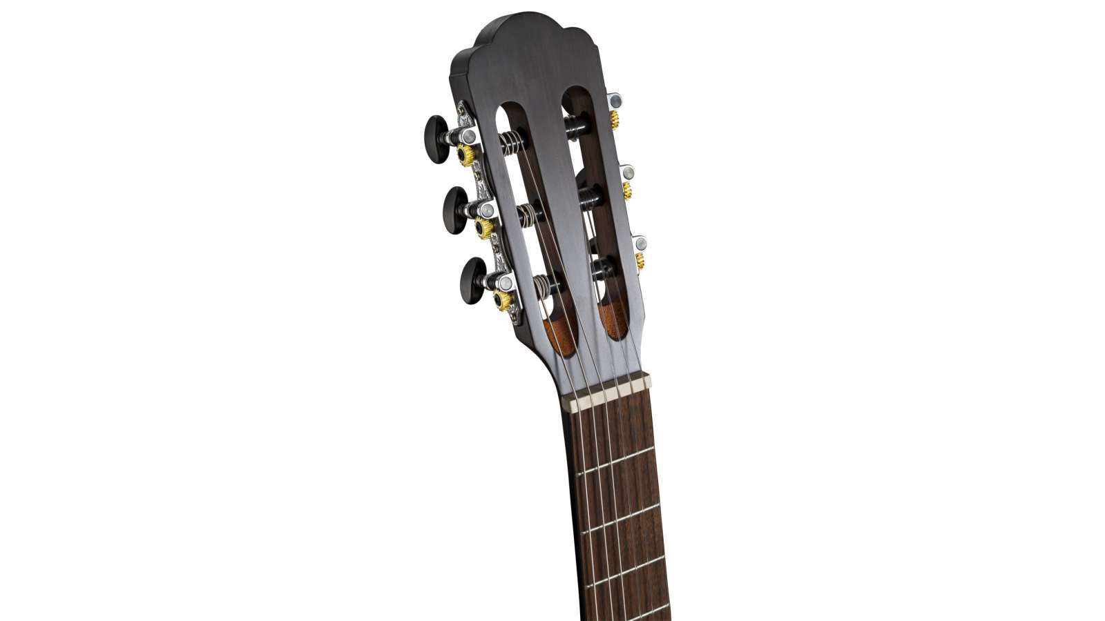 - Nickel-plated machine heads with black buttons