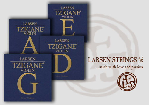 The Larsen Tzigane® G, D i A žica imaju najlonsko jezgro od više vlakana. G i D žica su obmotane precizno valjanim čistim srebrom, a A žica aluminijumom. E žica je napravljena od posebnog karbonskog čelika.