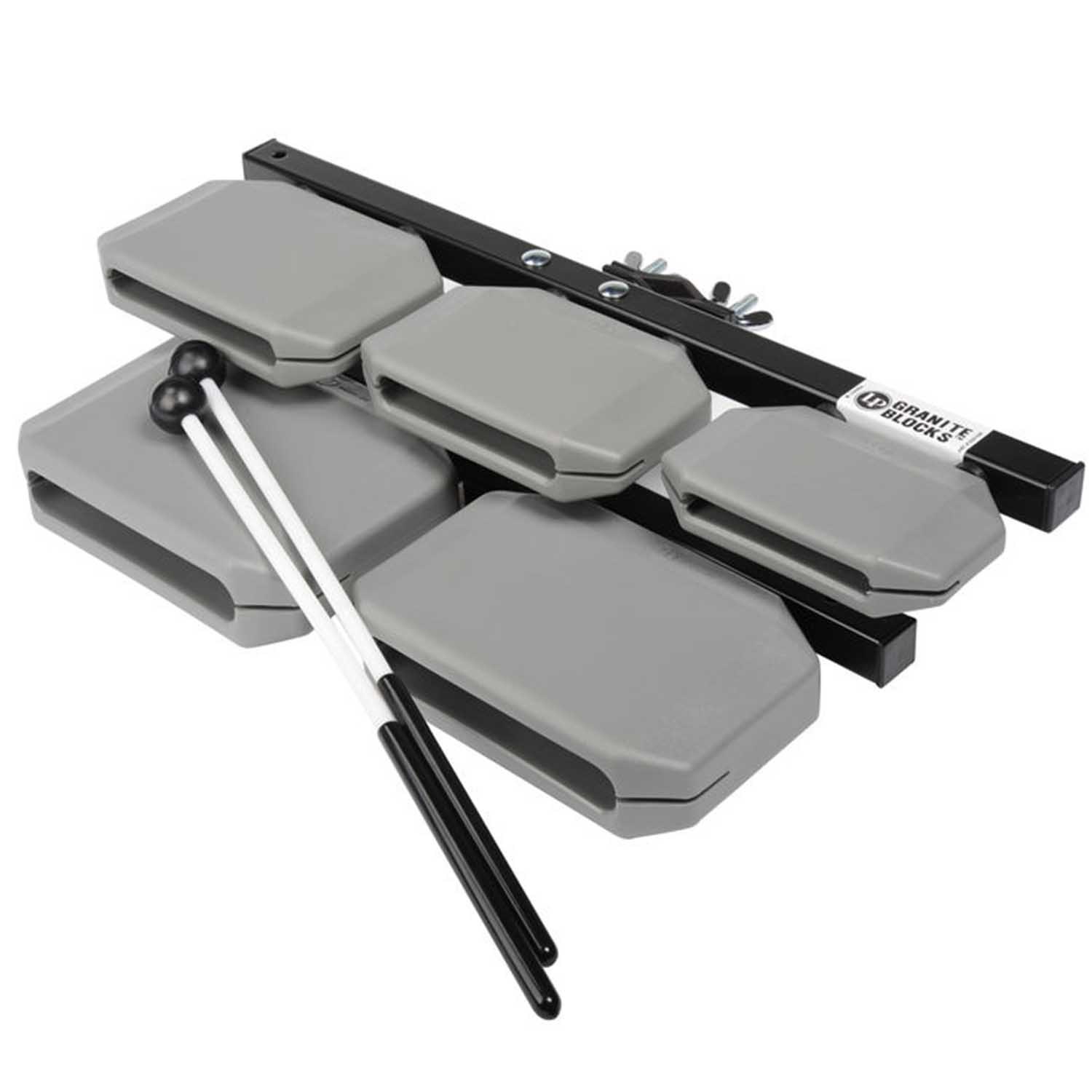 LP Granite Blocks are the modern-day version of ancient Chinese temple blocks, tuned to a pentatonic scale for playing melodic accent rhythms. With the included mounting hardware, the blocks can be set up five across or in an over/under configuration. The entire unit mounts to nearly any stand that is ¾” diameter or greater.