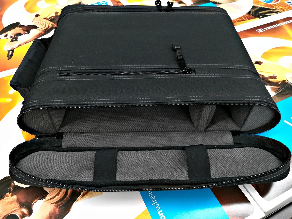 Kofer torba za bežične mikrofonske sisteme napravljena je od platna i sunđera, najkvalitetnijeg pliša za postavu i šperploče koja čuva vaš bežični sistem i daje torbi čvrstinu. Otvara se sa obe strane i odgovara svim bežičnim bazama i ručkama.
