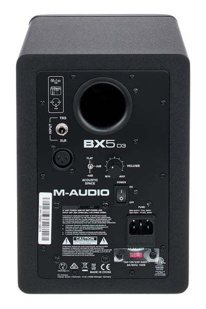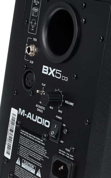 At M-Audio, we understand no two listening spaces are the same. Therefore, the BX5- D3 monitors custom tailors your sound to your environment, so you will always experience sonically-true, reassuringly-accurate sound reproduction. Negate problematic bass frequencies and limit the impact of nuisance standing waves thanks to BX5-D3’s special Acoustic Space control for precise adjustment of BX5-D3’s sound output in line with your studio space.