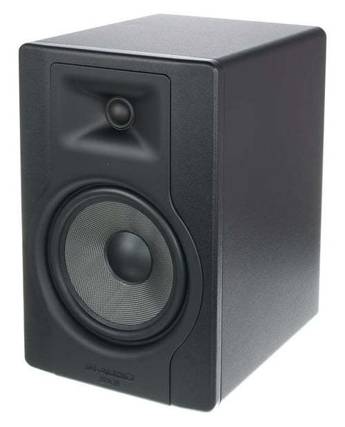 With M-Audio’s BX8-D3, every detail has been meticulously engineered with one goal in mind – to facilitate the freedom to mix with confidence. BX8-D3 monitors have a rear- mounted bass port, meticulously engineered to the exact length and diameter. The result? Deep, defined bass response with maximum bass extension and resolution. When combined with a smoothly-flared port, BX8-D3 monitors markedly reduce theaudibly-intrusive air turbulence that results when bass is played back at high sound pressure levels (SPLs). BX8-D3’s tweeter is mounted in a custom waveguide for reliably accurate dispersion that eliminates unwanted high-frequency “scatter,” whilst ensuring a soundstage that remains consistently wide and stable. For seamless setup and easy-location of the optimum listening position, the BX8-D3’s front-mounted positioning LED shines brightly when you’re located in the perfect listening spot, for uncompromisingly accurate and reliable critical evaluations. Finally, BX8-D3’s iconic design on the front panel—M-Audio’s famous “keyhole” shape—is more than just an attractive look: This special “fastenerless” design ensures so there are no driver attachment screw heads to interfere with the sound coming from our drivers.