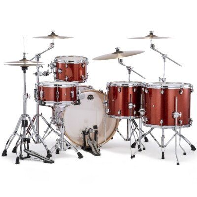Mapex Mars Birch 5pc crossover set bubnjeva Blood Orange Sparkle nudi 100% breze, školjke male dubine sa novim SONIClear nosećim ivicama, proizvodeći brz, jasan ton sa brzim odbijanjem. Konfiguracija tomova 1 gore i 2 dole drži tomove na dohvat ruke, dok veliki duboki bas bubanj proizvodi moćan, prirodno izjednačen ton. Veličine su 22×18, 12×8, 14×12, 16×14, 14×6.5.