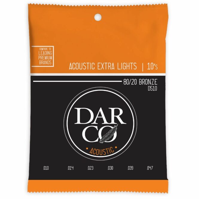 Darco D510 žice za akustičnu gitaru. Legura je bronza u odnosu 80/20, tenzija extra light a debljina je 10-47. Tonski stabilna, izdržljiva žica po veoma povoljnoj ceni.