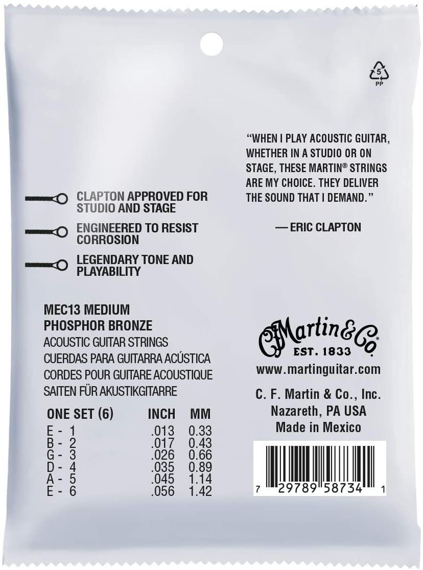 Martin Guitars MEC-13 Eric Clapton Signature Strings Set – medium phosphor bronze strings set for acoustic guitar.