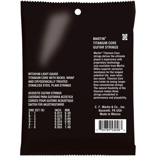 Martin MTC160 Titanium Core Light Acousitc 12-55, žice pružaju vrhunsko iskustvo muzičarima sa patentiranom tehnologijom. Doživite novi nivo udobnosti i odziva uz vodeću inovativnost u muzičkoj industriji i vrhunsku otpornost na koroziju. Titanijum je fleksibilniji od čelika, pružajući veoma prijatno iskustvo sviranja, pri kome ostaje jak i izdržljiv. Martin koristi čisti nikl da omota titanijumske žice. Čisti nikl je prirodno otporan na koroziju i zadržava svoj ton veoma dugo. Čisti nikl i titanijum zajedno pružaju vrhunsku žicu za gitaru bez korozije.