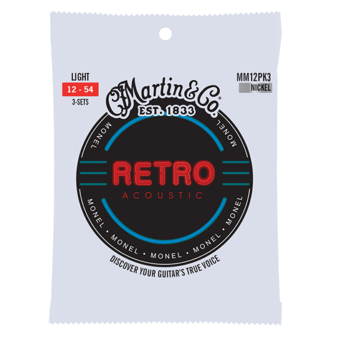 Martin Guitars Retro MM-12 Light string set for acoustic steel guitar, light tension, roundwound, gauges 012, 015, 025w, 031, 041, 054
