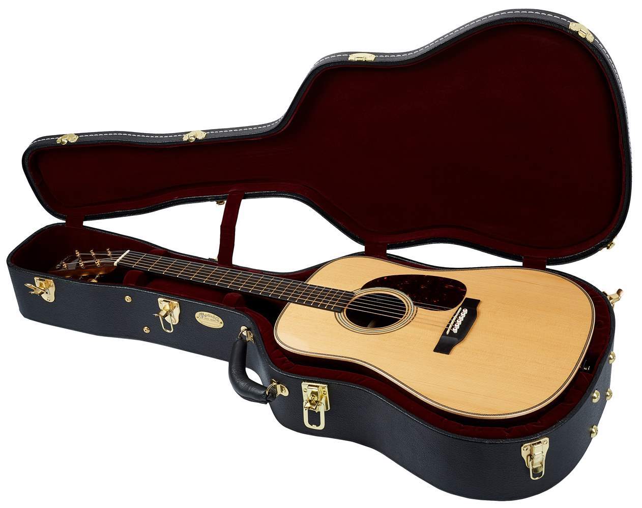 Martin D-28E Modern Deluxe elektro-akustična gitara iz serije Modern Deluxe je vrhunski izrađen instrument napravljen od odabranih vrhunskih materijala, koji kombinuju svet tradicionalnog Martin dizajna gitare sa ultramodernim karakteristikama. Prednji deo gitare je napravljen od čvrste Sitka smreke, dok su zadnji deo i bočne strane takođe napravljeni od čvrstog istočnoindijskog ružinog drveta. Zvučna ploča od smreke je prošla proces torefakcije i druge modifikacije pre sklapanja, koje proizvođač zajednički naziva akronimom VTS (Vintage Tone Sistem). Kao rezultat ovih procesa, drvo u kratkom vremenskom periodu poprima jedinstvene zvučne karakteristike drveta starog pedeset ili više godina. Rezonancija zvučne ploče i ukupna dobra akustička svojstva gitare su poboljšani posebnim smanjenim X-rebara (Scalloped Forvard-Shifted X-Brace). Vrat je napravljen od pravog mahagonija (Svietenia – Honduraski ili Meksički mahagonijum), sa nežno asimetričnim profilom koji pruža maksimalnu udobnost sviranja po celoj površini, opremljen je rukohvatom od ebanovine sa 20 pragova u impresivnoj zlatnoj završnici. Orijentaciju preko njegove površine olakšavaju prednji i bočni biserni (Abalone) markeri položaja. Zvučni sistem sadrži Fishmanovu Aura VT Blend elektroniku, koja koristi prednost sofisticiranog dizajna ugrađenog pretpojačala instaliranog u zvučnom otvoru gitare i mogućnosti Aura Acoustic Imaging Technology, možete birati između zvuka Acoustic Matrix underdrive piezo pickupa, Aura HD slike ili mešavine ova dva. Gitara se isporučuje sa premium tvrdim koferom.